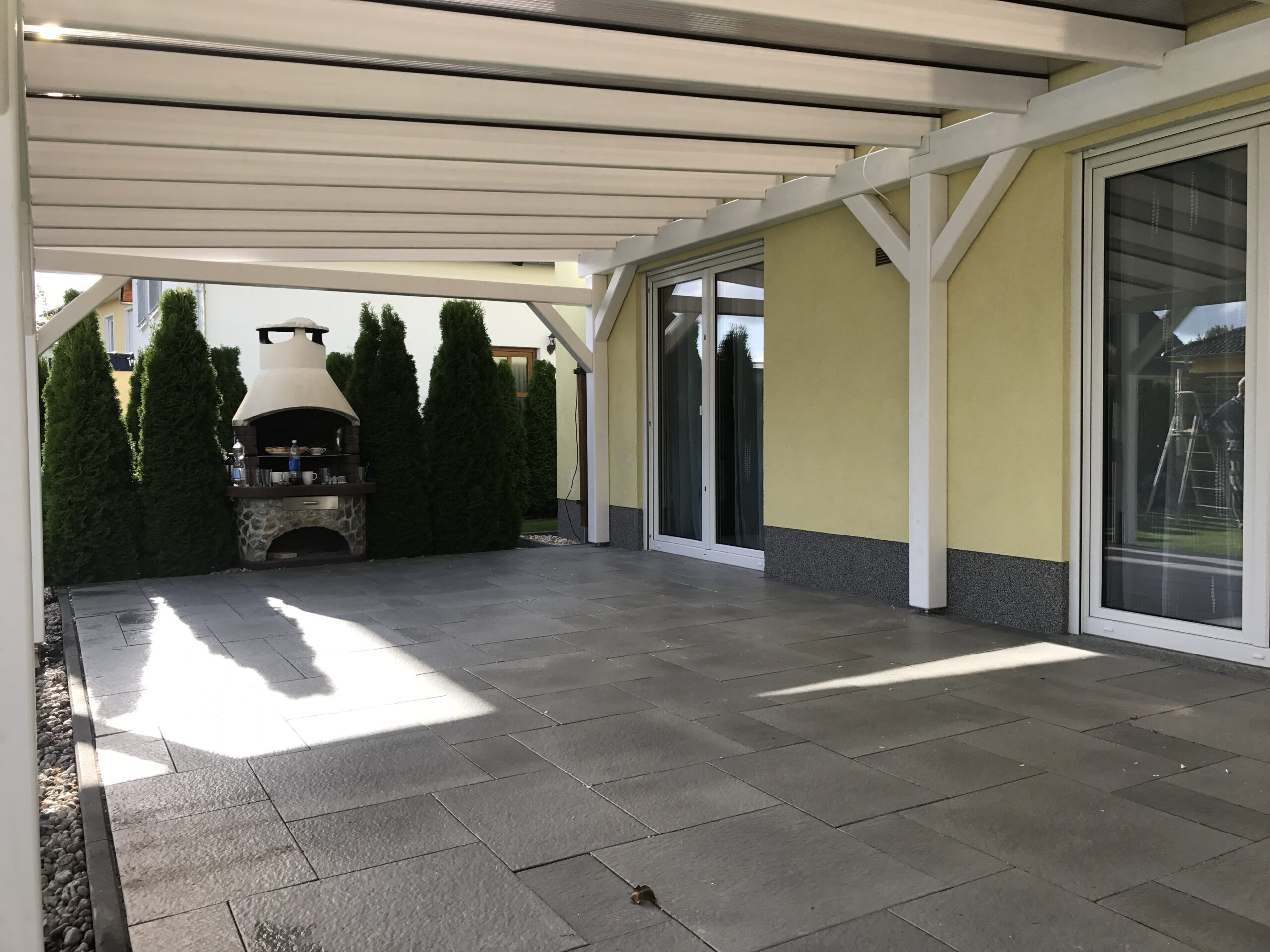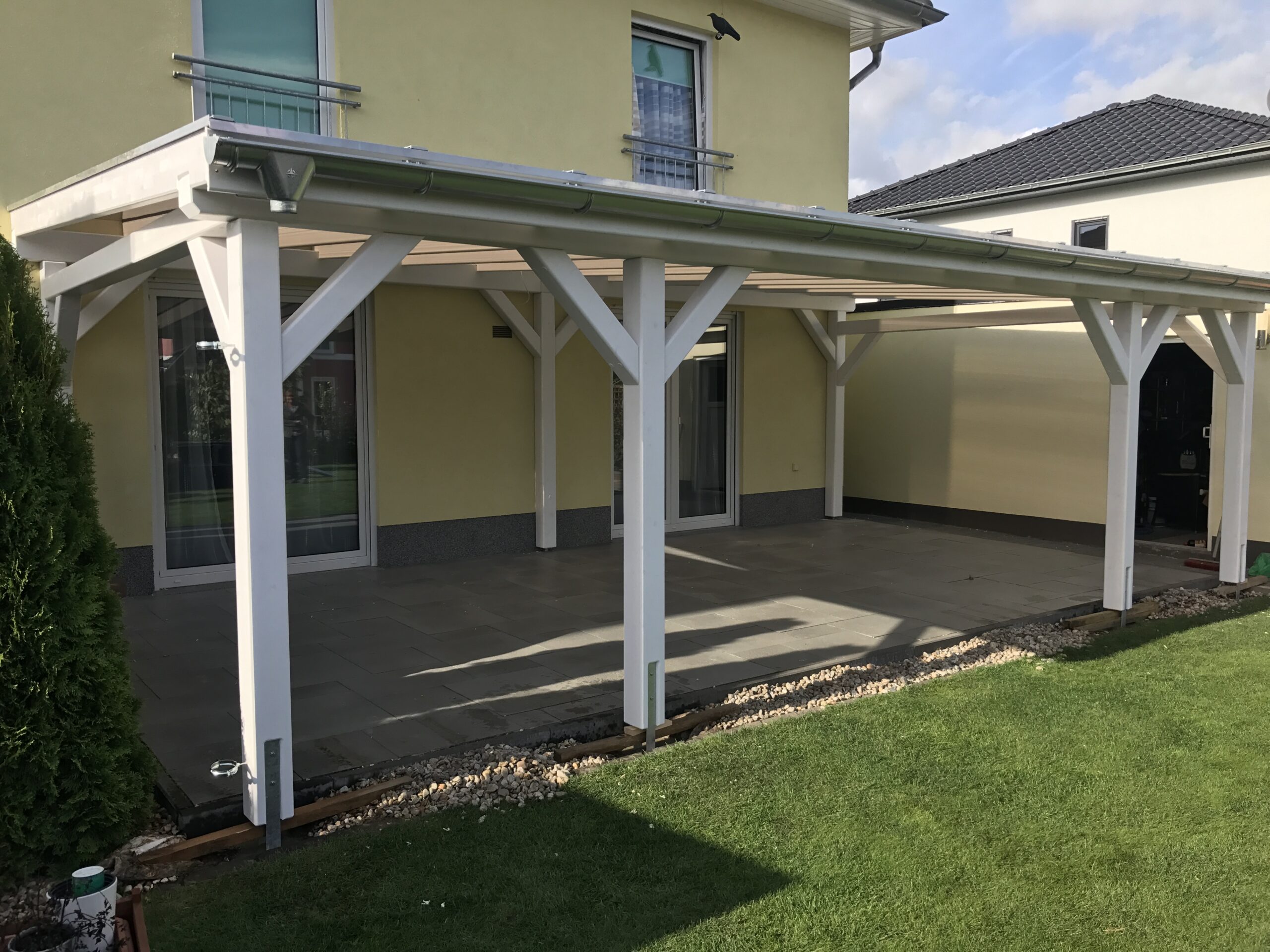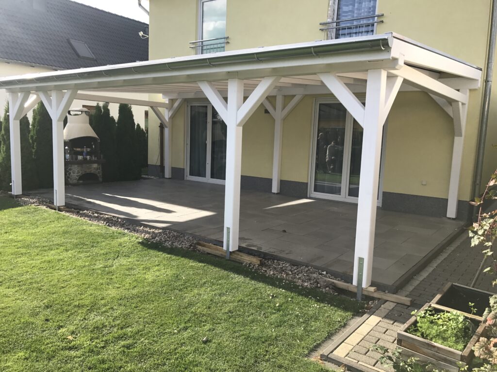 Eine elegante, freistehende Holz-Terrassenüberdachung, die Stil, Komfort und handwerkliche Qualität vereint.
