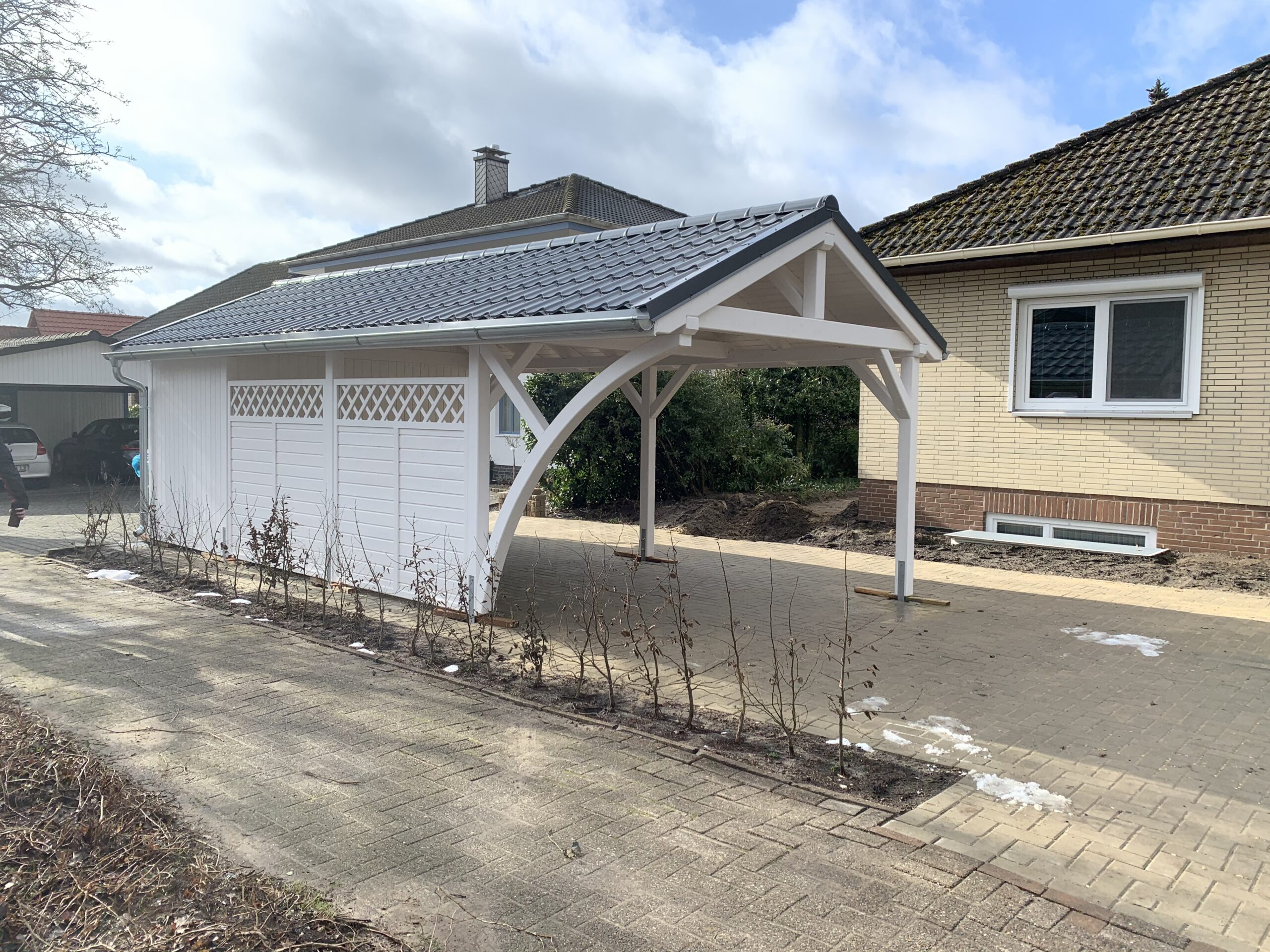 Ein Carport, der mit seinem ländlichen Charme und handwerklicher Ausführung begeistert.